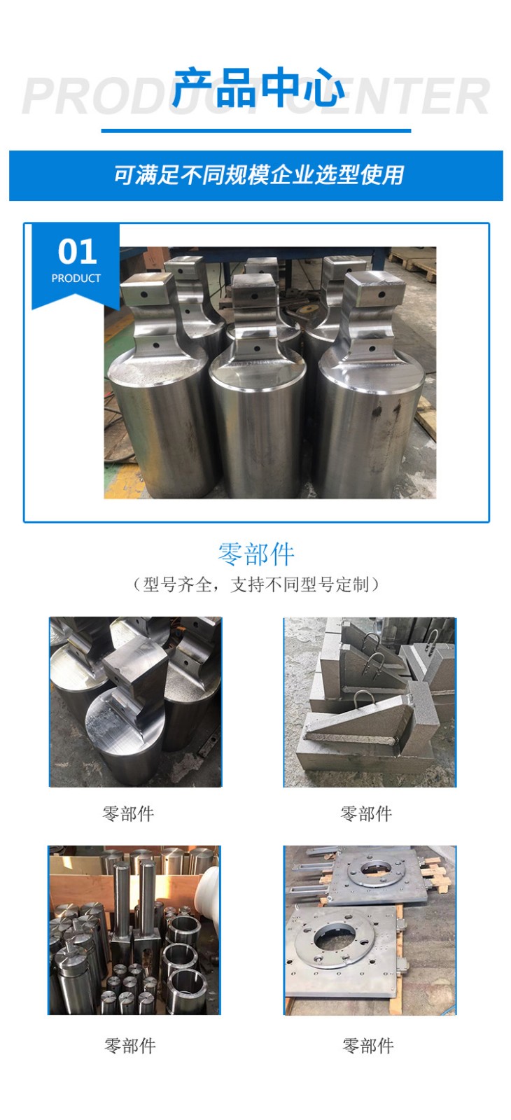 主要產(chǎn)品是大型機加工件,各種軸類(光軸,傳動軸,花鍵軸),非標(biāo)零部件,開卷線用減速機,非標(biāo)鉚焊結(jié)構(gòu)件,